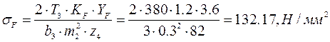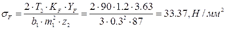 Производим проверку по изгибным напряжениям, при