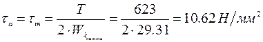 - амплитуда и среднее значение напряжения цикла касательных напряжений. В расчетах принимают, что касательные напряжения изменяются по пульсирующему циклу. Определяются по формулам
