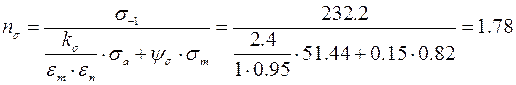 - запас усталостной прочности при учете только нормальных напряжений, находится по формуле