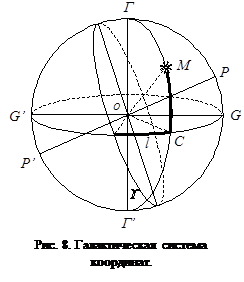 небесной сферы (рис. 8), наиболее близкий к средней линии Млечного Пути. Положение галактического экватора задаётся экваториальными координатами его северного полюса Г, то есть точки, отстоящей на 90° от всех точек галактического экватора и находящейся в северном полушарии небесной сферы. Диаметрально противоположная точка