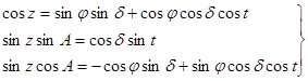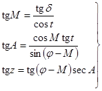 . Требуется найти зенитное расстояние z и азимут А для некоторого момента Т среднего солнечного времени (местного, поясного или декретного).