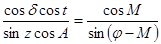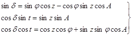 точки наблюдения, зенитное расстояние z и азимут A. Требуется найти склонение светила