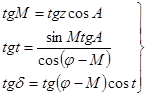 Переход от горизонтальных координат к экваториальным.