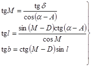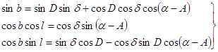 , D и А. Требуется найти b и l. Вычисления производятся по следующим формулам: