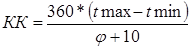 Коэффициент континентальности КК рассчитывается по формуле (3):