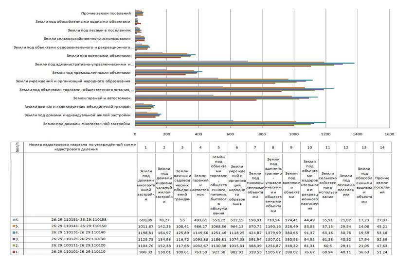 Диаграмма сравнения удельных показателей кадастровых зон станицы Ессентукской