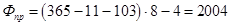 (dk=365, dв=103, dпр=11, tр=8, dпп=4)