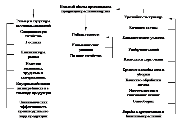 Рис.1.2 Структурно-логическая факторная модель объема производства продукции растениеводства.