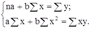Чтобы найти значения коэффициентов a и b, необходимо решить следующую систему уравнений: