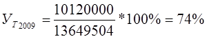 Уровень товарности в период 2007-2009 гг. составляет в среднем 80%. Это говорит о том, что основную долю произведенной продукции растениеводства предприятие реализует и лишь небольшую часть использует для собственных нужд. При этом наибольший уровень товарности наблюдался в 2008 году -103%, что свидетельствует о сокращении излишков запасов продукции растениеводства. Излишки запасов образовались из-за низкого уровня товарности продукции растениеводства, который в 2007 году составлял 62%.