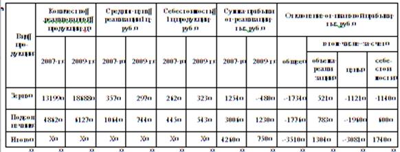Анализируя данные таблицы 12 можно сделать вывод об уменьшении в отчетном году суммы прибыли от реализации подсолнечника на 1776 тыс.руб. От продажи зерна хозяйство получило убыток -480 тыс.руб. Главным образом это обусловлено уменьшением средней цены реализации зерна -60 руб., подсолнечника 290 руб. и увеличением себестоимости 1 ц зерна и подсолнечника 61 руб. и 98 руб. соответственно.
