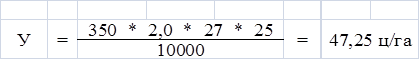 Тогда урожай озимой ржи "Вятка" на корню составит: