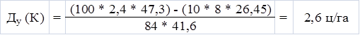 Ку- коэффициент использования элементов питания из удобрений, %;