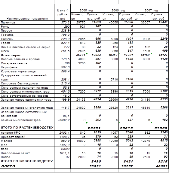 Расчет стоимости валовой продукции в ценах 2004 года .