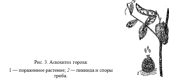 Другие виды этого рода вызывают сухую гниль моркови, капусты и картофеля. Среди важнейших представителей других родов могут быть названы виды Ascochyta pisi и Ascochyta cucumeris, вызывающие соответственно аскохитоз гороха (рис. 3) и тыквенных; Diplodiazeae — возбудитель сухой гнили (диплодиоза) кукурузы; Septoria lycopersici — возбудитель белой пятнистости (септориоза) листьев томата.
