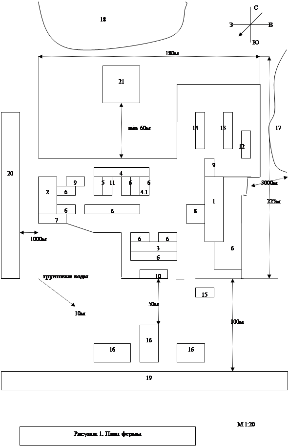 Телятники расположены неправильно (боковой стеной) по отношению к господствующим ветрам. По нормативным данным животноводческие объекты должны располагаться к господствующему ветру торцовой стороной или господствующий ветер может дуть в угол здания.