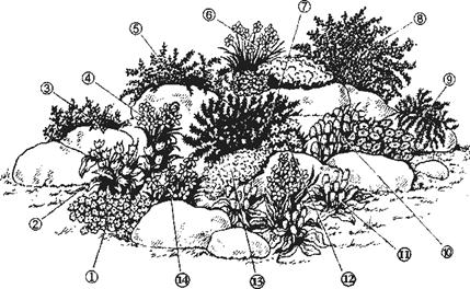 Набор растений для альпийской горки может быть практически любым, разумеется, с учетом специфики этой формы цветника. Приведем лишь один вариант весеннего оформления: