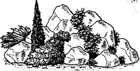 Между камнями, но так, чтобы не закрывать их, высаживаются растения. Особенное предпочтение следует отдавать растениям с оригинальной формой куста, стабильно декоративным (желательно вечнозеленым), низкорослым, не способным образовывать заросли.