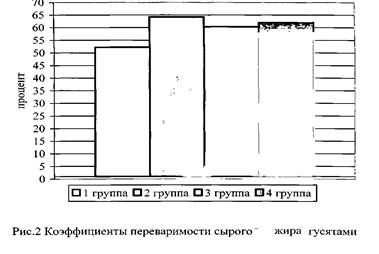 Имеющаяся разница в выделении питательных веществ с помётом при одинаковом их поступлении в организме гусят позволило рассчитать коэффициенты переваримости, представленные в таблице 11 и на рисунках 2