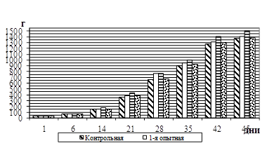 Изменение живой массы цыплят-бройлеров за период выращивания графически отражено на рисунке 1.