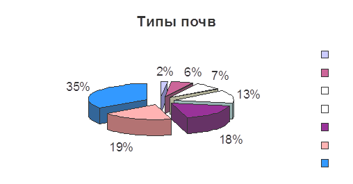 На следующей диаграмме представлено процентное соотношение площадей почвенных контуров.