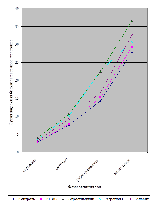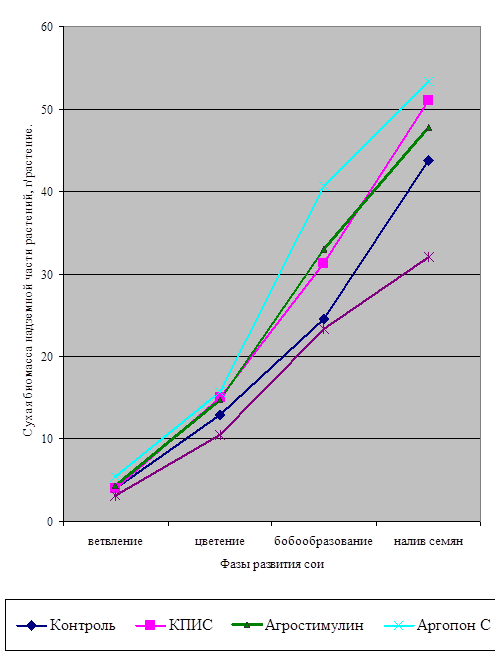 В этом плане сорта сои, имеющие длительный период вегетации, низкие показатели чистой продуктивности фотосинтеза (ЧПФ), накапливают в репродуктивный период развития меньший процент сухой биомассы, а урожай семян у них оказывается намного ниже биологических возможностей.