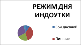 Зелень для индоуток (горох, клевер, люцерну и др.) скашивают утром и вечером, когда она наиболее свежая и сочная. Надо иметь ввиду, что гусята плохо поедают провяленную, грубостебельчатую и лежалую зелень. Скошенную свежую траву подвозят с поля и сейчас же раздают в цельном виде в кормушки ясельного типа, а часть ее измельчают (длиной 2-3 см), не допуская перетертости и волокнистости, и скармливают в смеси с комбикормом. Свежую цельную зелень индоуткам оставляют в ясельных кормушках для поедания в ночное время, особенно рано на заре. В отдельных кормушках постоянно должны находиться минеральные корма и гравий.За время проведённых исследований в частном хозяйстве рассматривались определенные виды деятельности индоуток.Это распределение видов деятельности по времени, почасовое распределение видов деятельности индоуток в течении дня, спектр питания.