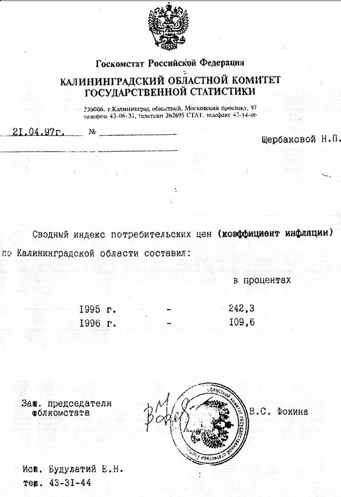Бухгалтерский баланс за 1995 год, пересчитанный с помощью индекса инфляции в цены 1996 года.