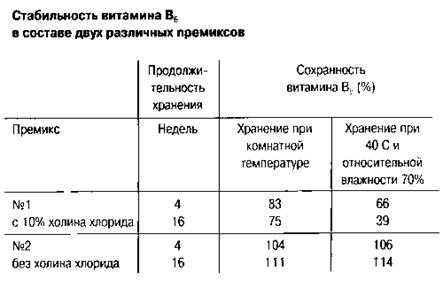 Продукт Lutavit® B6 показывает хорошую сохранность витамина в составе витаминных смесей и кормов. В кислых, водных растворах наблюдаются лишь незначительные потери витамина. Однако в нейтральных и щелочных растворах происходит быстрый распад витамина под действием света. Величина рН растворов, которые предполагается подвергать автоклавированию, не должна превышать 5.