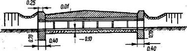 Трубы-переезды устраивают из готовых бетонных и железобетонных труб диаметром 0,3—0,6 м и более. Дно канала в месте укладки трубы тщательно выравнивают с подсыпкой под трубу крупнозернистого песка слоем около 10 см (рис. 4).