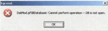 • Если не запущен сервер баз данных. Для ее устранения необходимо обратиться к администратору, с просьбой запустить сервер базы данных ПК ЕГРЗ.