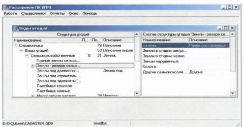 • Виды угодий - вызывает окно редактирования видов угодий . Угодья - вызывает окно редактирования контуров участков