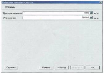 Эта страница служит для ввода информации о площади земельного участка. На этой странице обязательно заполнение одного из двух полей.