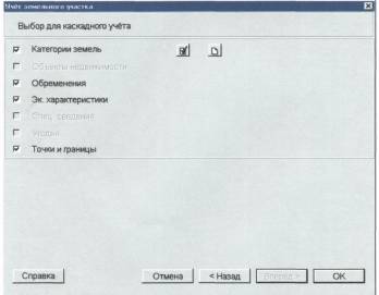 Выбор для каскадного учета характеристик производится установлением соответствующих флагов. Кнопки