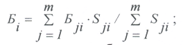 - расчет балла бонитета 1-го рабочего участка (Б¡) взвешиванием баллов бонитета j > х почвенных разновидностей или оценочных групп почв ¡-го земельного участка (Бj¡) на их площади (Sj¡) (табл. 3):