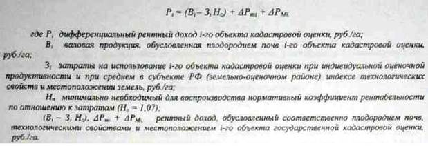 Расчетный рентный доход складывается из дифференциального и абсолютного рентных доходов. Дифференциальный рентный доход объектов государственной кадастровой оценки определяется по формуле: