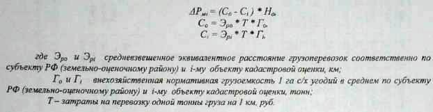 Рентный доход, обусловленный местоположением объекта кадастровой оценки (АРmi) определяется как разность между стоимостью грузоперевозок при средних по субъекту РФ (земельно-оценочному району) значениях грузоемкости и удаленности земель (Со, руб./га) и их стоимостью на оцениваемых объектах (Ci, руб./га):
