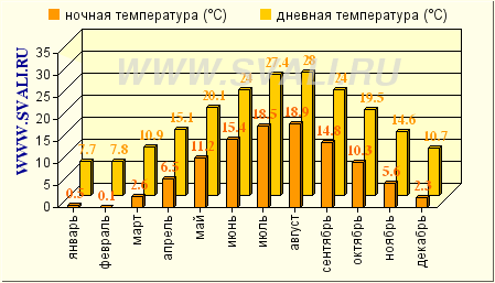 Таблица среднемесячных температур в Геленджике: