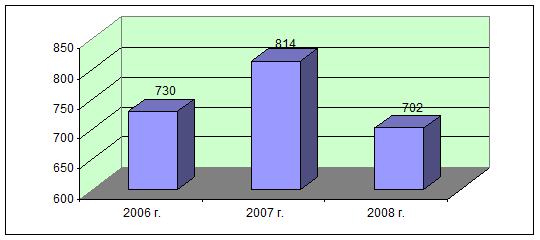 Согласно данным табл.2. СПК Агрофирма Родина имеет высокий финансовый потенциал. В 2006-2008 годах предприятие получило высокие показатели по производству продукции растениеводства и животноводства, однако следует отметить, что в 2007-2008 году имеет место тенденция, связанная со снижением продукции валового производства. При этом денежная выручка от реализации продукции различных видов выросла. Предприятие агросферы характеризуется высокой степенью технической и производственной оснащенности, в среднем за три года среднегодовая стоимость основных производственных фондов составила 57625,67 тыс. грн. Средняя цифра земельных угодий хозяйства составляет 4324,667 га. На предприятии в среднем за три года трудятся 765 человек. На рис.2.1. дадим характеристику динамики среднегодовой численности работников, занятых в с.-х производстве.