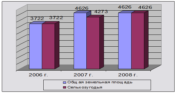 Согласно полученным данным общая земельная площадь предприятия увеличилась на 904 га, составив в 2007 году 4626 га. В 2008 году величина сельхозугодий и общая площадь земельных ресурсов совпадают.