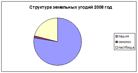 Хозяйство располагает тремя основными видами с/х угодий: пашни, пастбища, сенокосы, что в сравнительной степени определяет специализацию хозяйства. В отчетном году произошли изменения в размерах некоторых из них. Незначительно увеличилась площадь пашни на 1 га. Площадь пастбищ не изменилась, осталась на таком же уровне, а в отчетном году общая площадь с/х угодий в хозяйстве увеличилась на 1 га.