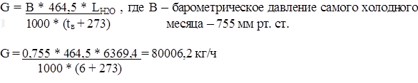 Вначале находим G – вес воздуха удаляемого из помещения за час: