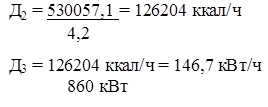 Д1 = 710499,5 - 180442,35 = 530057,1 кДж/ч