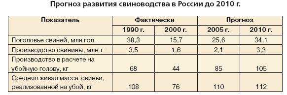 · ·разработать в регионах локальные системы чистопородного разведения и гибридизации, чтобы обеспечить выращивание за год 16–17 поросят на свиноматку к отъему, получить среднесуточный прирост живой массы на откорме 500–550 г.