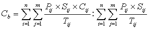 Средневзвешенная базовая плата за 1 куб.м. древесины (Cb,), отпускаемой на корню, на момент проведения кадастровой оценки лесных земель в оценочной зоне определяется по следующей формуле: