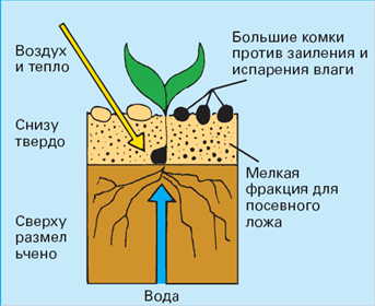 Для оптимального высева семян и наилучшего формирования корневой системы подготавливается идеальное посевное ложе с большими комками земли сверху, мелкой фракцией снизу и хорошо уплотненной почвой. Большие комки и пласты, которые еще остаются после обработки стрельчатыми лапами, измельчаются расположенным сзади сопроводительным оборудование или крошащим катком. Плоское расположение лемехов увеличивает силу вхождения орудия в почву, что обеспечивает наибольшее давление на катки-измельчители. Благодаря этому процессы выравнивания и крошения проводятся наилучшим образом.