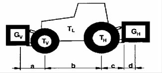 Расчет минимального переднего балласта и повышения нагрузки на заднюю ось предполагает, что все вышеуказанные размеры и массы известны. Если эти размеры и массы вам не известны и вы не можете их определить, есть только один надежный и точный способ, позволяющий избежать перегрузок: взвесьте ваш трактор с навешенными и приподнятым агрегатом, а затем сравните полученные значения с нагрузками на переднюю и заднюю ось трактора без навесного орудия. В результате вы определите действительную нагрузку на заднюю ось и разгрузку передней оси при навешенном и выглубленном агрегате.