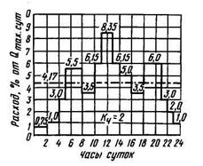 Максимальный суточный расход воды на ферме считают по формуле: Qmax = Q × K1, где K1 - коэффициент суточной неравномерности потребления воды, равный 1,3.