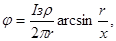 При сложных контурных заземлителях потенциална поверхности земли или пола помещения на расстоянии х от центра контурного заземлителя определяется из выражения