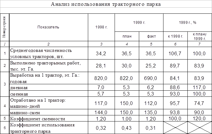 Эффективность машинотракторного парка приведена в соответствующих таблицах (см. выше). Если посмотреть на таблицу «Анализ использования тракторного парка», то сразу бросается в глаза низкий коэффициент использования парка. Это обусловлено тем, что в сельском хозяйстве характер работы – сезонный. Если мы более внимательно посмотрим на таблицу, анализирующую использование тракторного парка, то увидим, что годовая выработка на 1 трактор составляет 83,9% от плановой. Дневная же выработка составляет 117% от плановой. Т. е. в зимний период тракторный парк эксплуатируется минимально, а в летний – максимально, даже с перегрузкой.